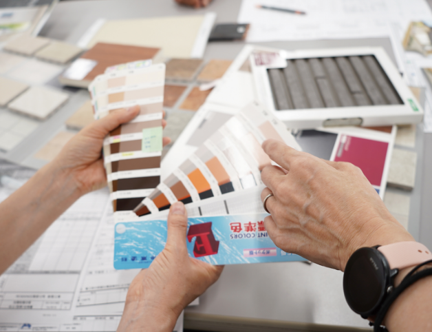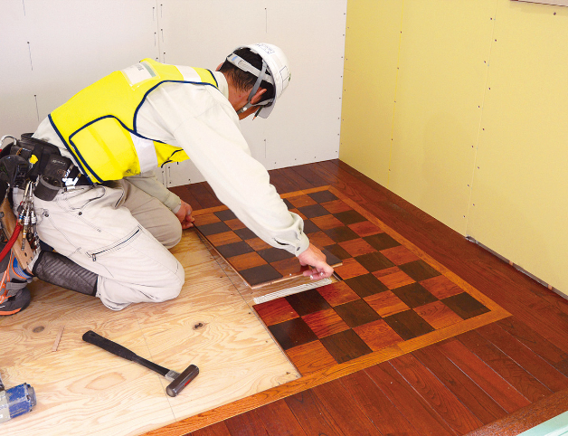 矢橋オリジナル無垢フローリングは、1枚1枚、職人の手で丁寧に塗装しています。木材の種類ごとに色や塗り方を調整し、木目の美しさと塗膜の強度を両立させた仕上がりが特長です。このフローリングはすべての木造建築で採用しています。私たちは、性能だけでなく、自然素材の心地よさや手仕事の温もりを感じて、心豊かに暮らせる家づくりを大切にしています。日本では職人の数が減るなか、ベトナムには意欲ある若い人材が豊富です。私たちは現地で矢橋の技術と想いを伝え、日本と同じ品質の“手による仕事”を次の世代へと継承していきます。