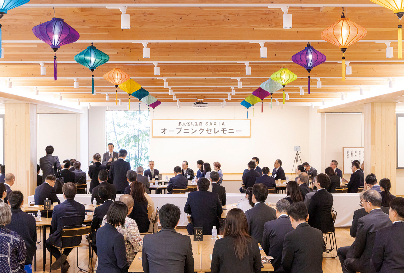 2025年4月24日、SAXIAの竣工を記念して「オープニングセレモニー」を開催しました。200名の来賓の皆様にお越しいただき、盛況のうちに無事終了することができました。当日は、駐日ベトナム大使館 ヒエウ様、在名古屋ベトナム名誉領事館 夏目様、岐阜県前知事 古田様、大垣市長 石田様、垂井町長 早野様、日本製鉄株式会社 岸本様、株式会社十六FG 村瀬様、住友林業株式会社 市川様、名古屋経済大学 佐分様、大垣養老高校 大橋様より心温まるご祝辞を賜りました。事業所見学では、矢橋テクニカルセンター敷地内でSAXIA ・ 矢橋林業 垂井工場 ・ Thăng Long House(社宅) ・ VEGETABLE SHOP 余呉農園を4班に分かれてご見学いただきました。お食事の時間には、SAXIAで今後提供予定の多国籍料理や、11カ国のスープをご用意し、各国出身の社員が料理の紹介を行いました。多文化が調和する和やかな雰囲気の中、交流を深めていただけるひとときとなりました。ご来場いただいた皆様、そしてご支援くださったすべての関係者の皆様に、心より御礼申し上げます。
