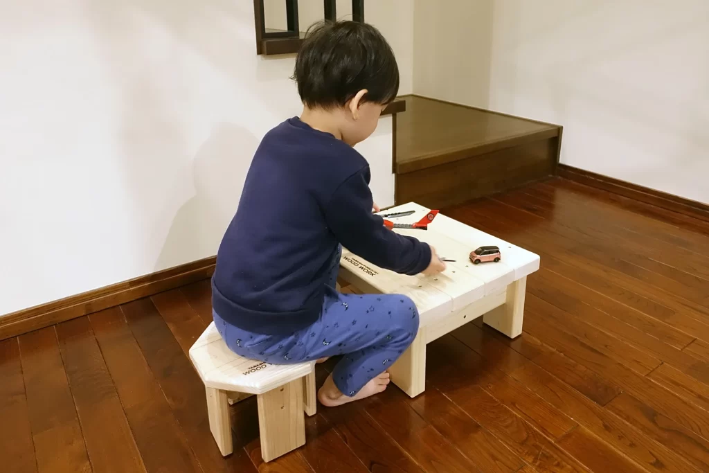 「八角イス」はお子様の踏み台にも使える小さなイスです。※今回は特別仕様