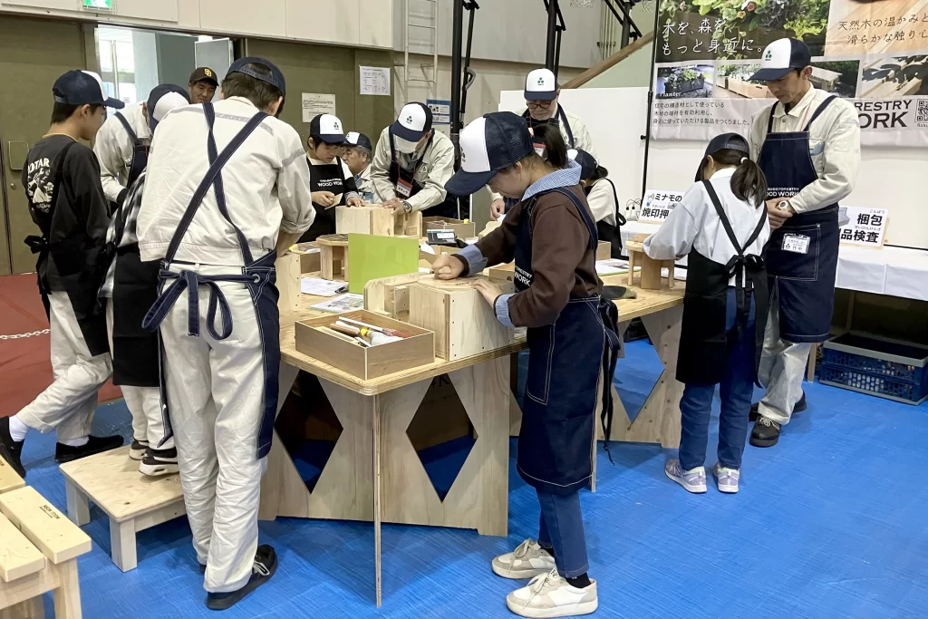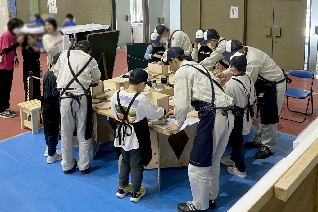 当日は木工加工技術者のお仕事体験として、多くのお子様に「八角イス」づくりを体験いただきました。