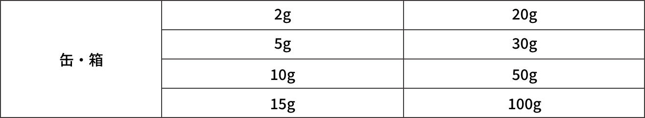 品種: 耐水・耐油包材品、2gから100gまで多種類ございます。