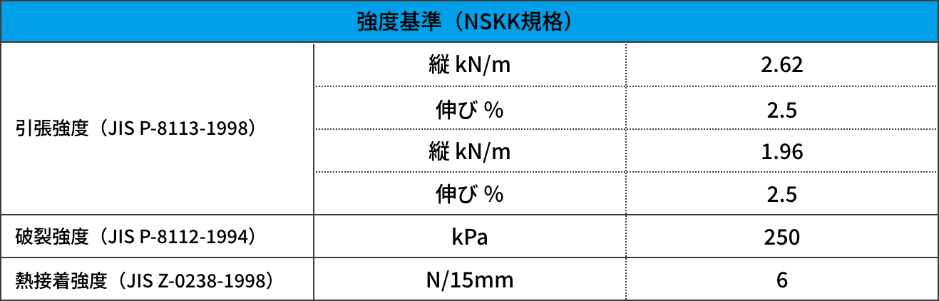 NSKK(日本石灰乾燥剤協議会)の強度、寸法、表示の規格に適合しています。