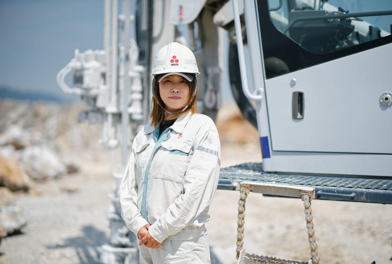 現在私は、採掘場内でパワーショベル、ホイールローダー、ブルドーザー、クローラードリルなど、多くの重機を使いこなしながら生産業務に携わっています。最初は、自分がこんなに大きな機械を操作できるのかと不安でしたが、今では自信を持って作業できるようになりました。採掘や発破作業は迫力があり、常に危険と隣り合わせです。だからこそ、安全への意識を高く持ち、チームで支え合いながら仕事をすることが求められます。
